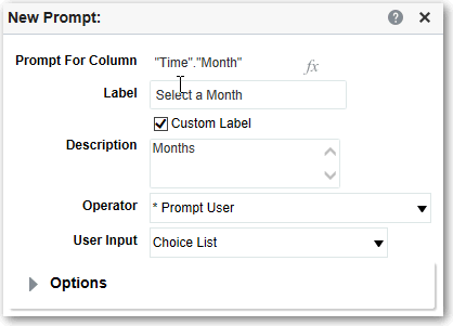 Um prompt permite que você filtre os dados que vê. Um prompt de coluna permite que os usuários exibam um painel de controle para selecionar um valor de uma coluna que afeta o que eles veem no painel de controle.