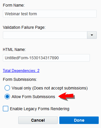 Note: If a form is set to Visual only, a user who tries to submit the form via the landing page will see an error message.