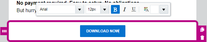 - Click the button's text and update the text with DOWNLOAD NOW. The button text toolbar allows you to update certain font format elements of the button.