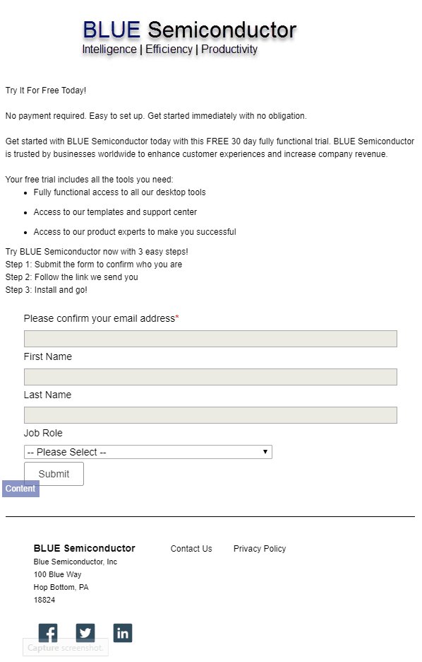 In this tutorial, we are creating a new landing page that provides visitors with more information about the free trial offered in the email and that prompts them to submit the form we created earlier.