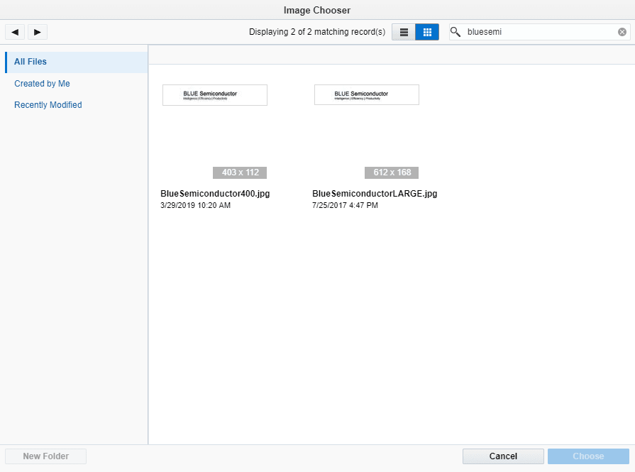 icon onto the canvas. Click Browse and search for the shared content in the Shared Content Chooser. In our case, we are searching for our standard footer. - Click Choose.
