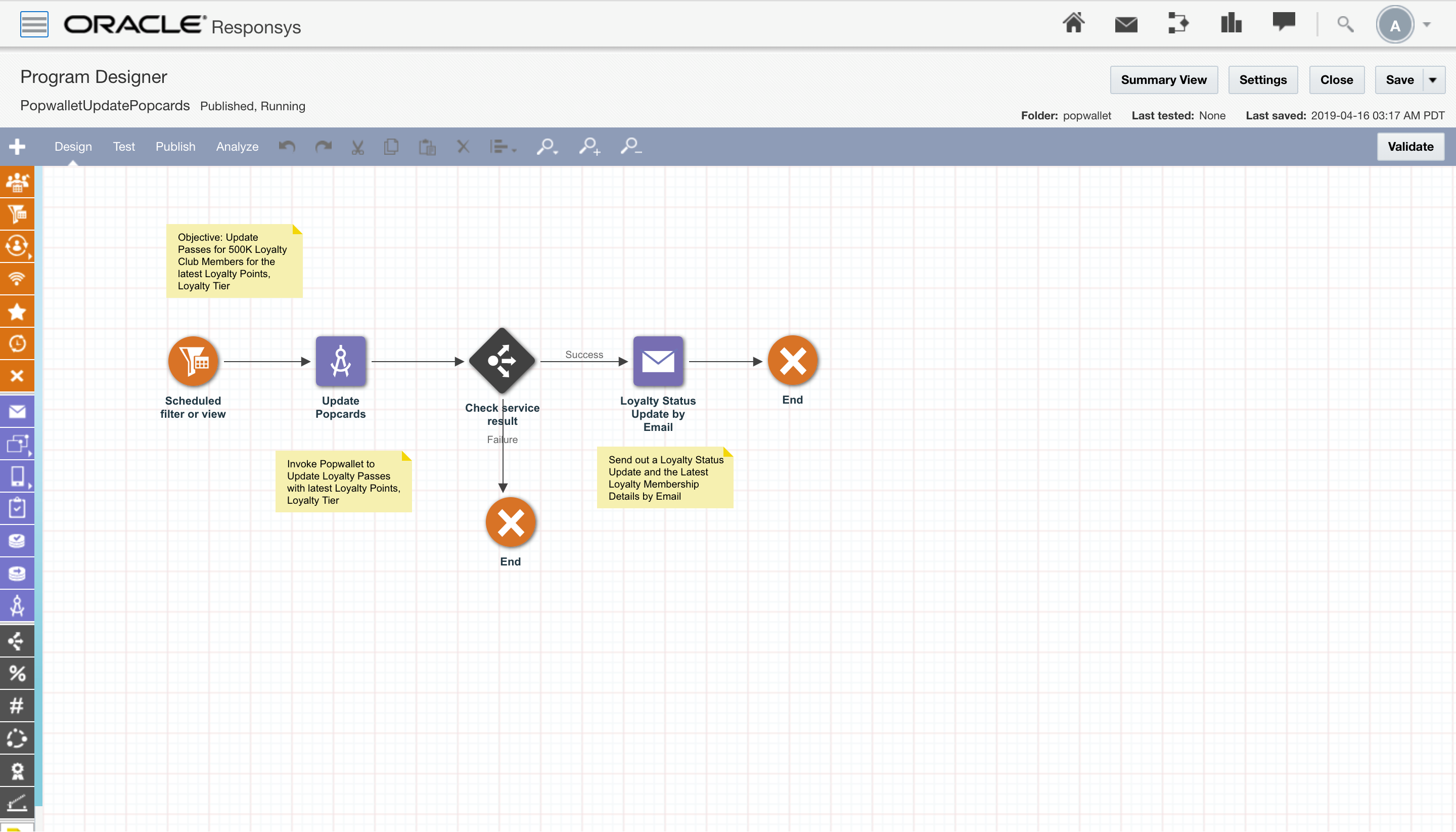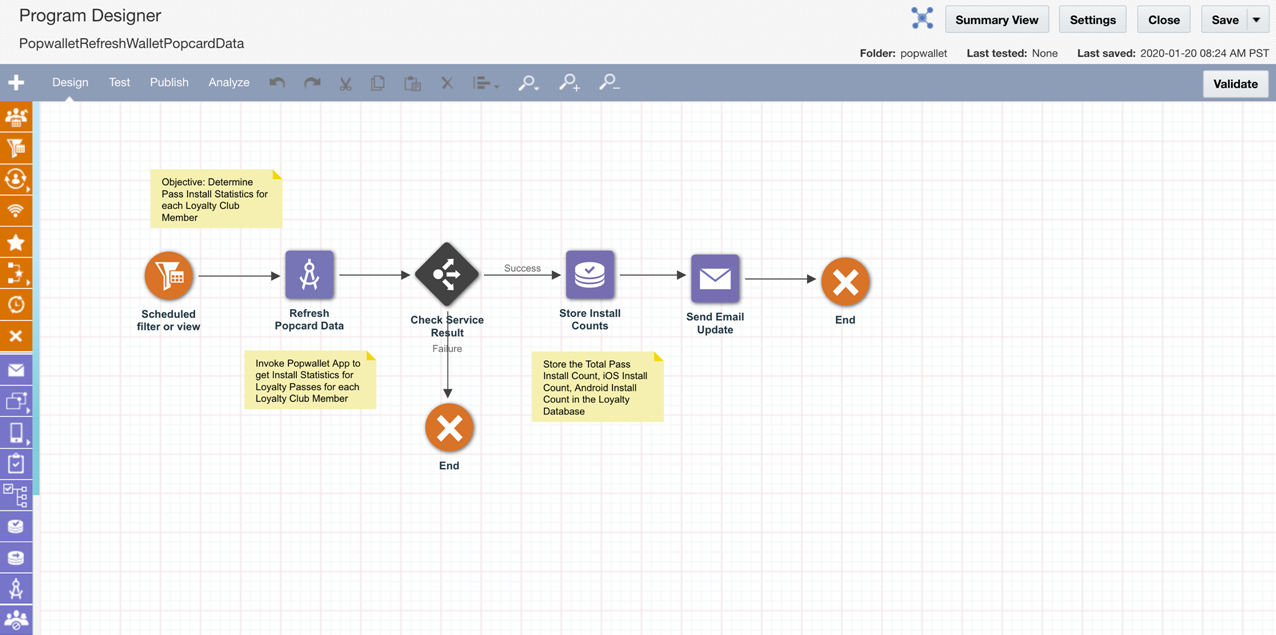 Responsys-Programmmanager und -Programmdirektoren können die Popwallet-App in ihre Multichannel-Programmorchestrierungen aufnehmen. Marketer können die Popwallet-Pässe in ihren digitalen Treue- und Geschenkkartenprogrammen sowie beim Erstellen von Programmen verwenden, die Sonderangebote oder Coupons an Kunden senden.