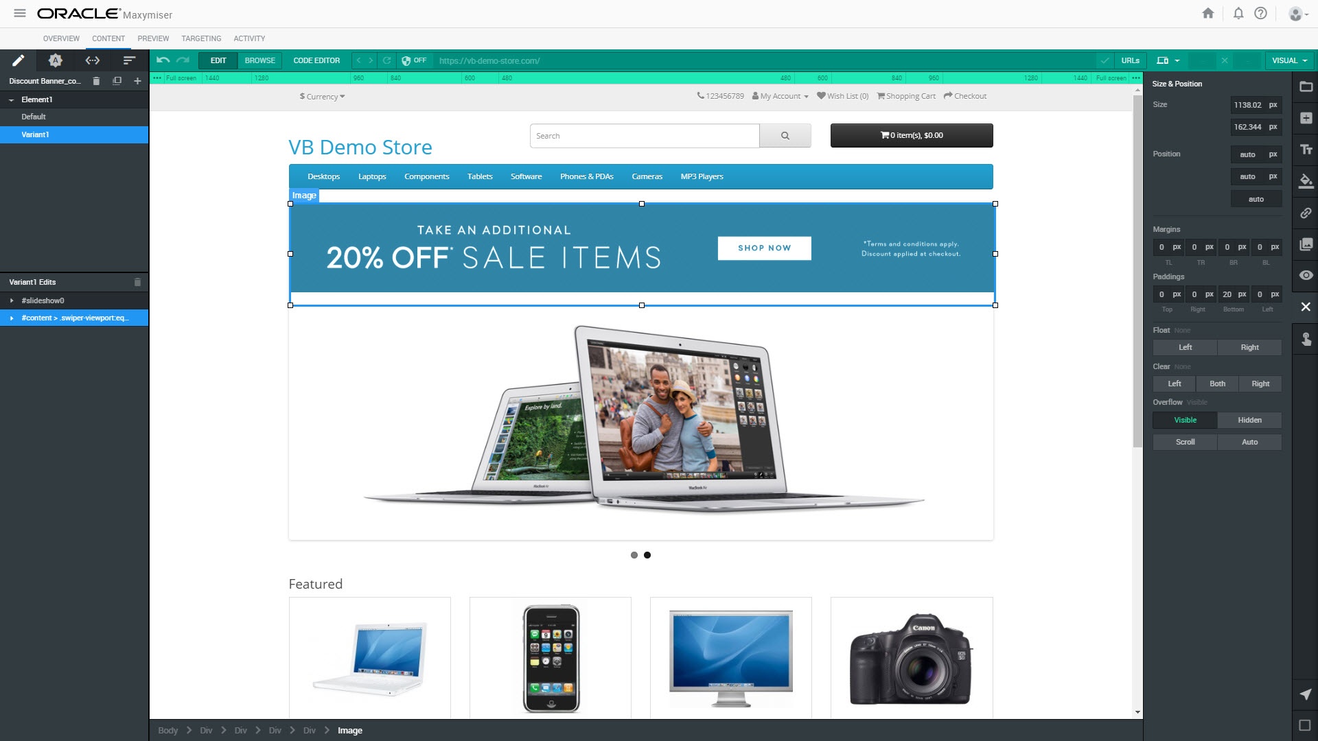 Wenn Sie mit der Webkampagne zufrieden sind, sollten Sie in Maxymiser eine Qualitätssicherung durchführen, damit die Kampagne das erwartete Verhalten zeigt. Mit dem Qualitätssicherungstool von Maxymiser können Sie alle Varianten prüfen und die Werte benutzerdefinierter Attribute simulieren. Weitere Informationen zu den Qualitätssicherungstools von Maxymiser.