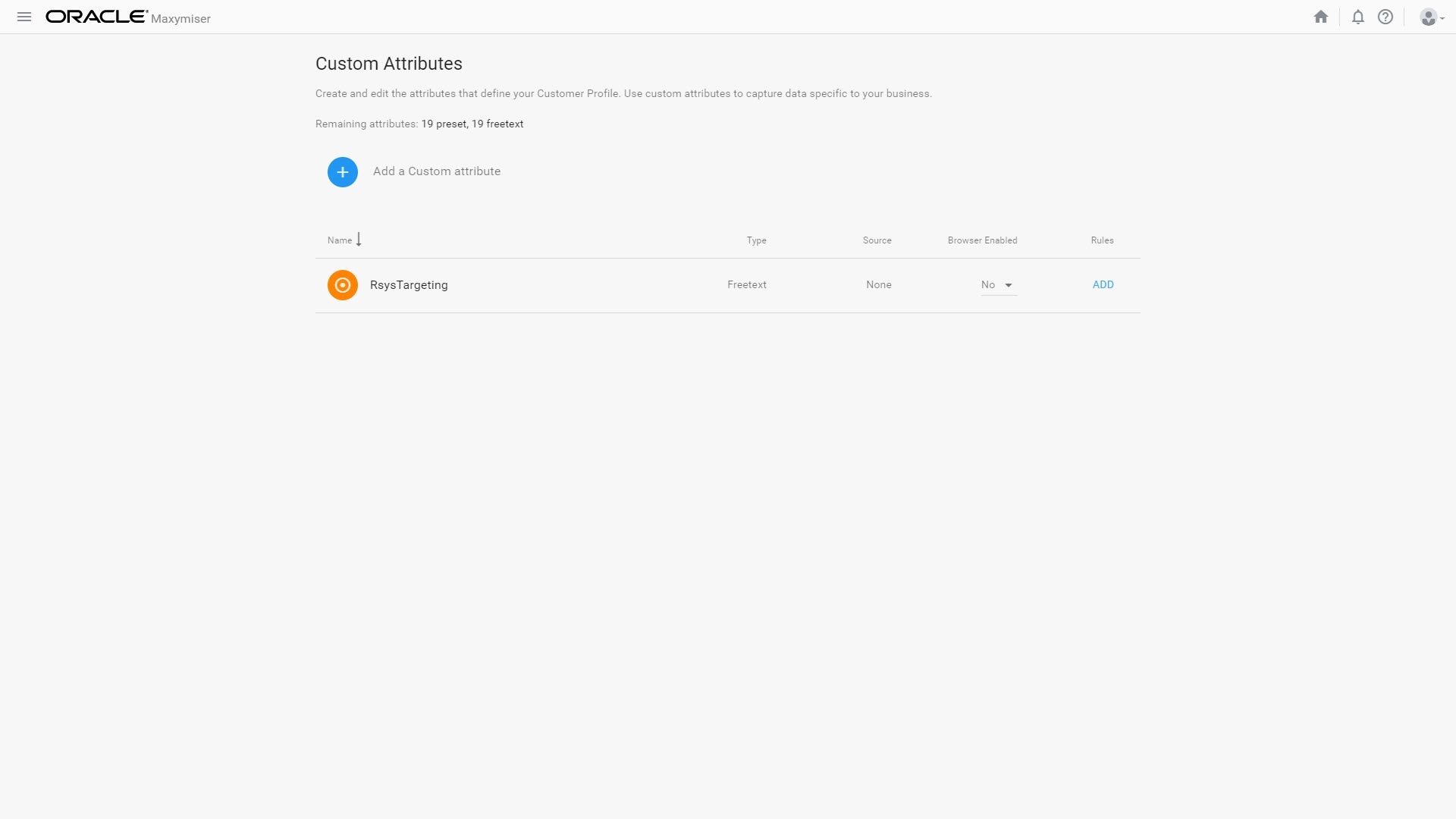 2. Klicken Sie auf das Symbol Add a Custom Attribute ().