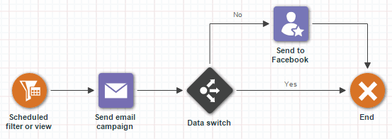 La actividad personalizada agrega miembros al público personalizado de SRM. A continuación, SRM envía los miembros a Facebook y este busca coincidencias con la lista enviada.