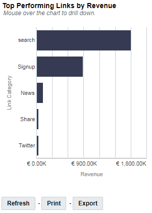 Catégories de lien les plus performantes par revenu. Pour analyser les liens associés à une catégorie de lien, cliquez sur la catégorie de lien afin d'accéder aux données détaillées.