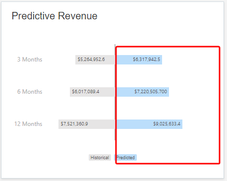 La deuxième vue affiche le revenu total prédictif pour 3 périodes prévisionnelles différentes : les 3, 6 et 12 prochains mois.