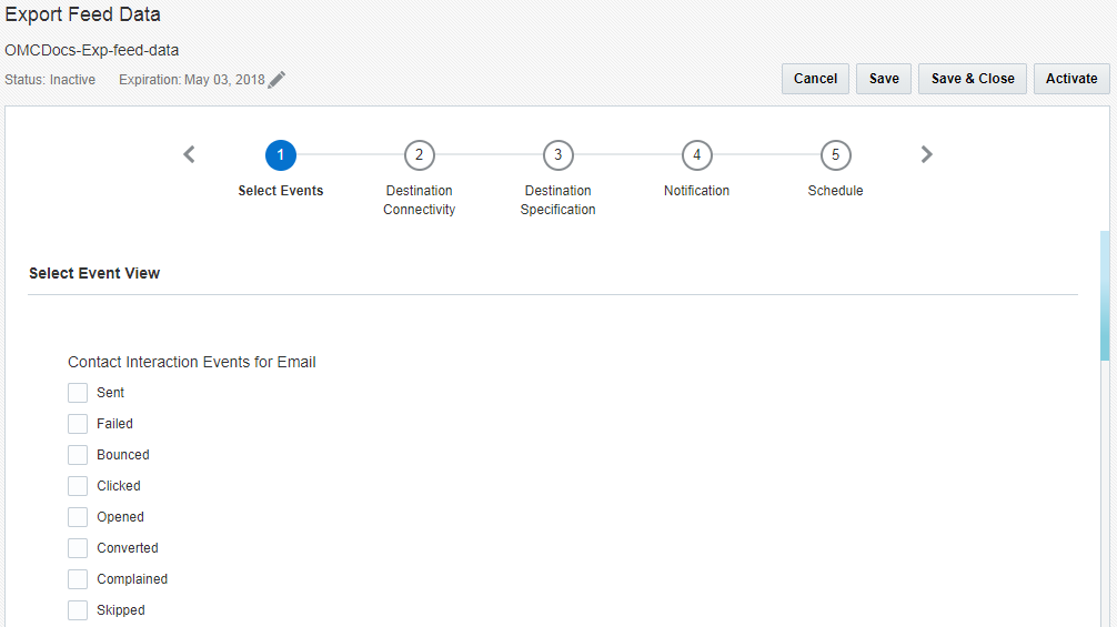 Remarque : Les travaux d'export de données de flux sont définis par défaut avec la valeur N'expire jamais. Vous pouvez modifier la date d'expiration en cliquant sur Modifier