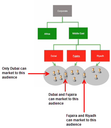 Dans ce type de structure, des unités organisationnelles homologues ne partagent pas l'audience, par exemple, lorsque chaque magasin peut cibler uniquement une audience dans sa ville.