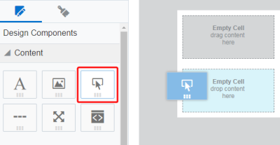 - Sur le modèle de courriel ouvert, déplacez le composant de contenu bouton sur la présentation.