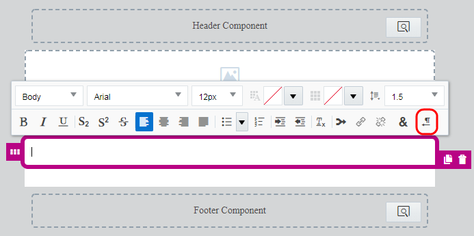 Si vous créez des courriels à l'aide d'un système d'écriture de droite à gauche, le concepteur visuel de modèles vous permet d'écrire de droite à gauche. Cette option est disponible lorsque vous ajoutez du texte dans un bloc de contenu ou sur un bouton.