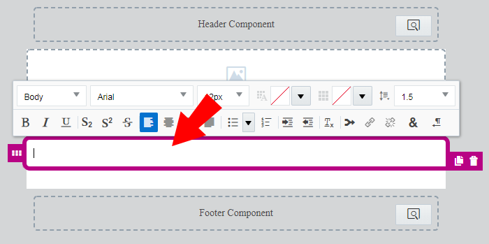 - Cliquez sur un bloc de contenu texte pour le sélectionner. En savoir plus sur les blocs de contenu dans les courriels.
