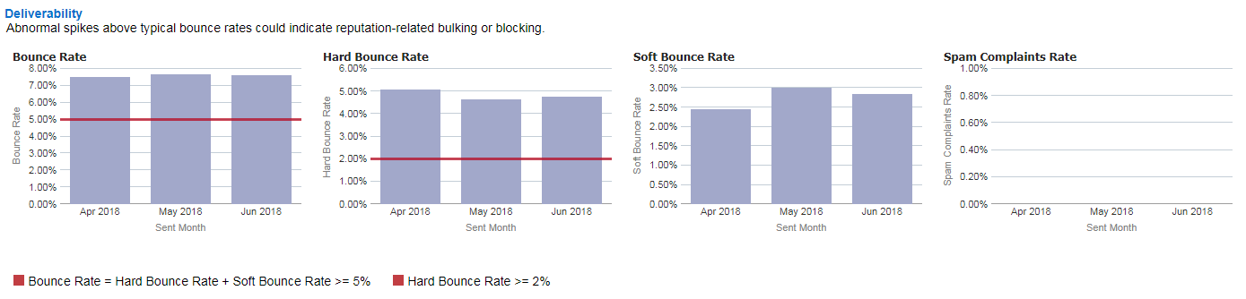 Questo dashboard fornisce una vista completa dello stato di recapitabilità di un trimestre. Ulteriori informazioni sull'analisi della recapitabilità in Progettazione messaggio e-mail.