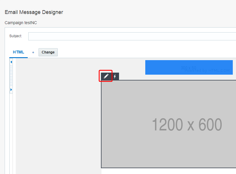 - In Progettazione messaggio e-mail selezionare il componente HTML per il quale si desidera aggiungere l'immagine.
