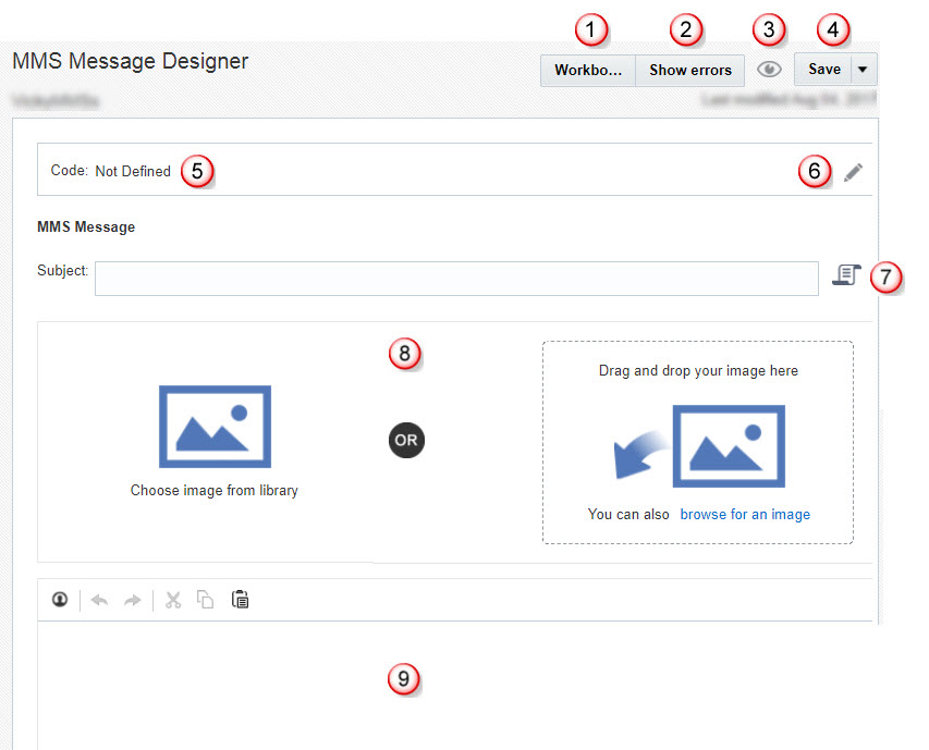 La Progettazione messaggio MMS si apre automaticamente quando si crea una campagna MMS.