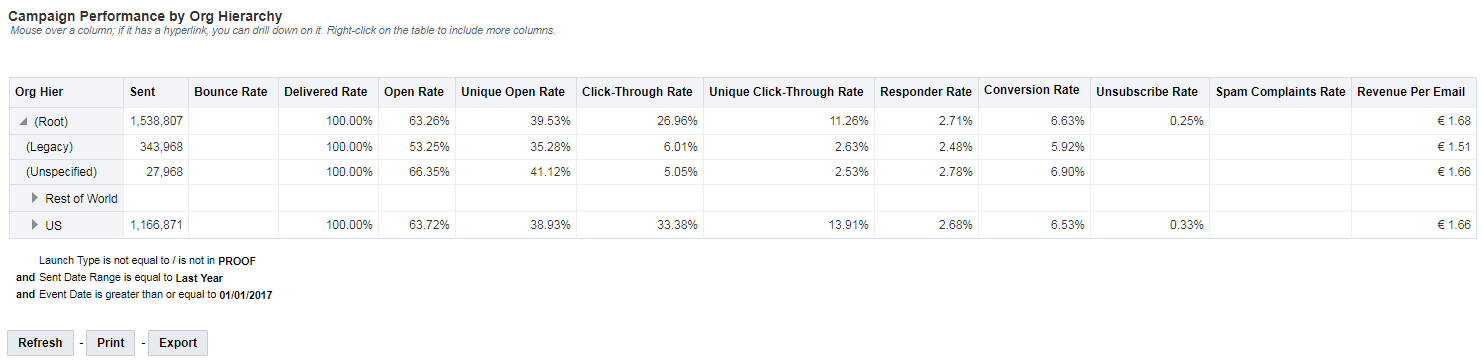 조직 계층별 캠페인 성과 테이블