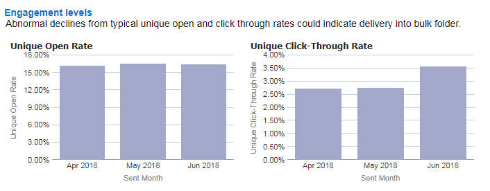 이 대시보드는 분기의 전달성 상태를 포괄적으로 표시합니다. 전자메일 메시지 디자이너를 사용한 전달성 분석에 대해 자세히 알아보십시오.