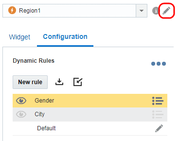 - 영역 드롭다운 목록에서 영역을 선택하고 콘텐츠 위젯을 두 번 누릅니다.