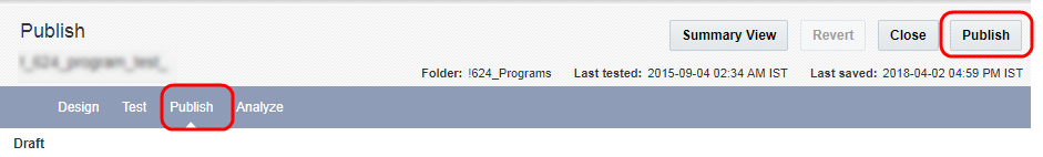 게시된 프로그램을 초안 버전으로 바꾸려면 게시를 누릅니다. 초안 버전이 게시되고 즉시 실행을 시작합니다.