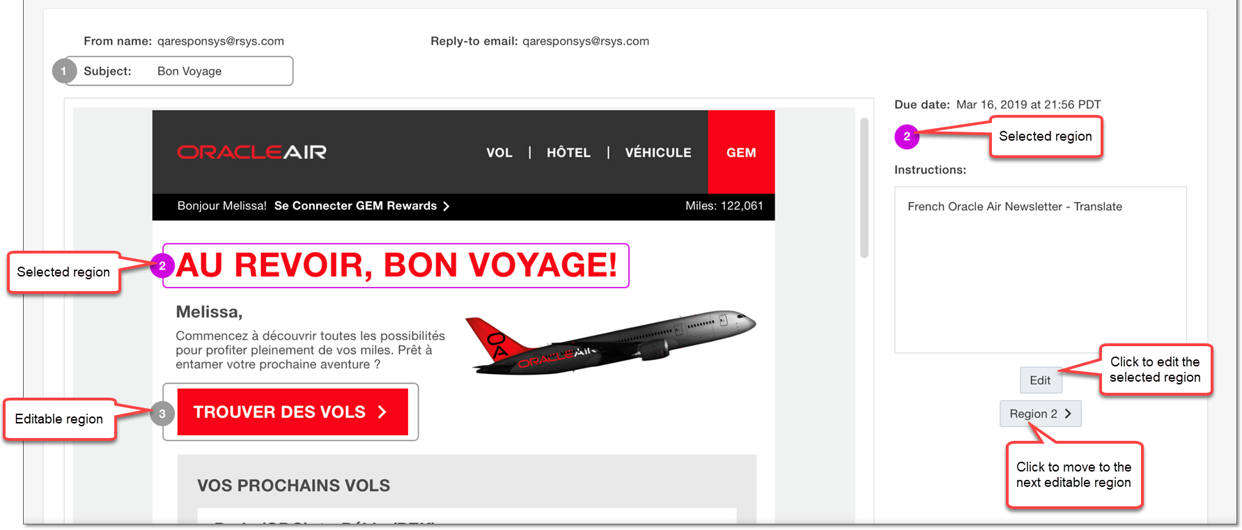 캠페인 디자이너가 선택한 항목에 따라 번역자는 전자메일 제목 라인, 텍스트 및 이미지를 작업할 수 있습니다. 캠페인 디자이너가 번역하도록 선택하지 않은 영역은 편집할 수 없으며, 대부분의 서식과 HTML 코딩은 변경할 수 없습니다.