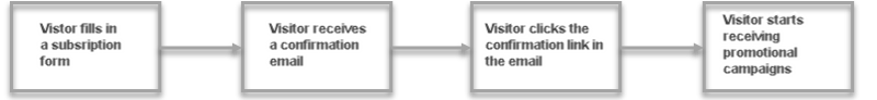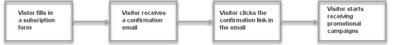 Когда пользователи оформляют подписку (заполнив форму на веб-сайте), они получают сообщение электронной почты с запросом на подтверждение вступления в программу. После подтверждения подписки они будут добавлены в список рассылки и будут получать сообщения рекламной кампании по электронной почте.