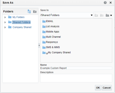 - Чтобы сохраняемый отчет был доступен всем пользователям, выберите Общие папки > Общие для моей компании > Общие папки.