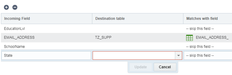 - Объединить в таблицу, используя следующее поле — если существующие записи не должны удаляться, выберите поле для объединения новых записей в существующие записи.
