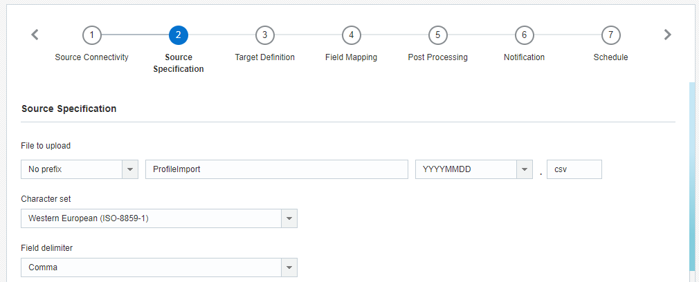 На этом шаге вводятся сведения об импортируемом файле.