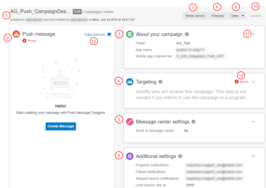 Примечание. Начиная с версии 19C, Рабочая книга кампании фоновой рассылки имеет обновленный интерфейс и теперь называется Конструктор кампаний фоновой рассылки. В отличие от Конструктора кампаний, в интерфейсе Конструктора сообщений не было сделано никаких серьезных изменений. Конструктор кампании включен для всех новых учетных записей после 19C и доступен в программе управляемой доступности для существующих учетных записей. Для доступа к этой функции для существующих учетных записей выполните вход на страницу службы поддержки Oracle и создайте запрос на обслуживание. Для получения дополнительных сведений об этом изменении см. раздел Изменения Конструктора кампаний фоновой рассылки.