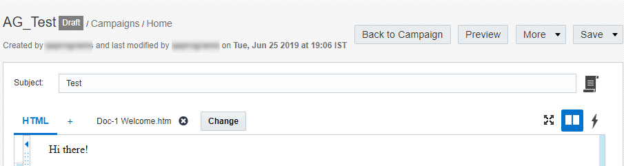 - 要更改市场活动的名称,用户必须单击页面顶部的市场活动名称。