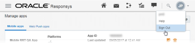 在准备好注销时,单击右上角的图标可显示菜单,然后选择 Sign Out(注销)。