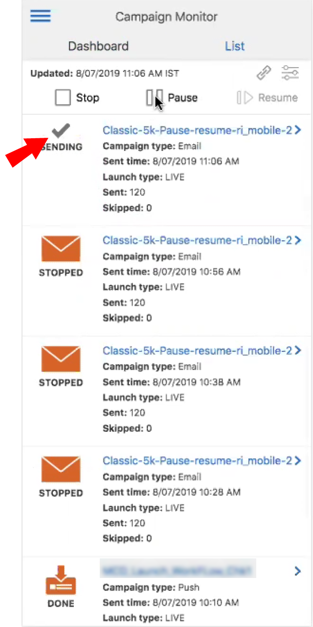 - 如果中止了市场活动启动,则无法将其恢复。如果您需要恢复发送,请改为暂停市场活动。如果市场活动已中止,为了重新发送该市场活动,则需要将其重新启动。