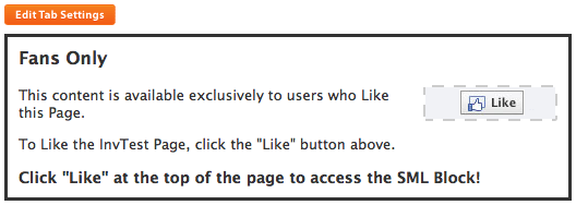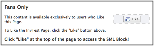 The facebook_like_gate allows SML developers to gate apps by user's fan status. This allows your page to serve custom contents to users who liked your page. For most use cases we recommend using the is_page_fan ?Global Context Variable with our ?if logic system instead of using this feature block because it's lighter weight and easier to implement. Attributes