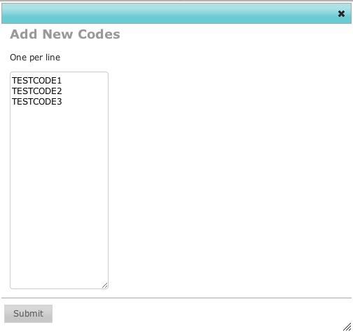 OverviewUsed for giving out unique codes to users, for example for offsite promotions. This feature block provides a JavaScript method: RegistrationCodeFeature.requestCode(feature_id, success_title, success_message, prefix_html) You may also use the related JavaScript class sml.tag.RegistrationCode.