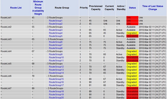 - There are no available Route Groups, and the Operational Status of one or more Route Groups within the Route List is degraded.