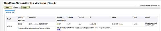 - If no additional congestion alarms are asserted, the DSR application task might be experiencing a problem that is preventing it from processing message from its Answer Message Queue. Examine the Alarm log in Alarms & Events on the active Overseer server.