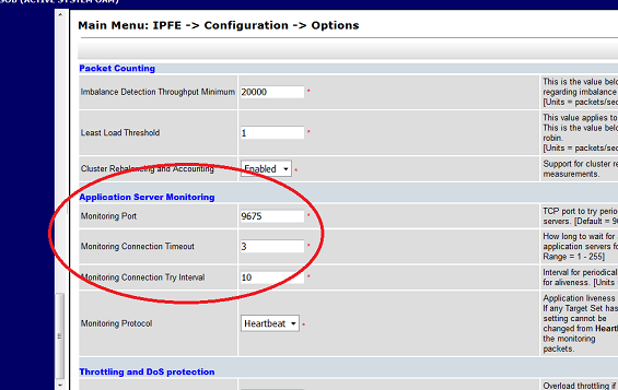 Each target set is configured with at least one backend application server (DAMP). The IPFE raises the 5009 alarm when the IPFE detects no DAMP is live. The IPFE detects the DAMP liveliness by receiving the DAMP heartbeat on time. The following screen shows the IPFE monitoring the DAMP XSI port 9675 and the heartbeat is received every 3 seconds through this port.