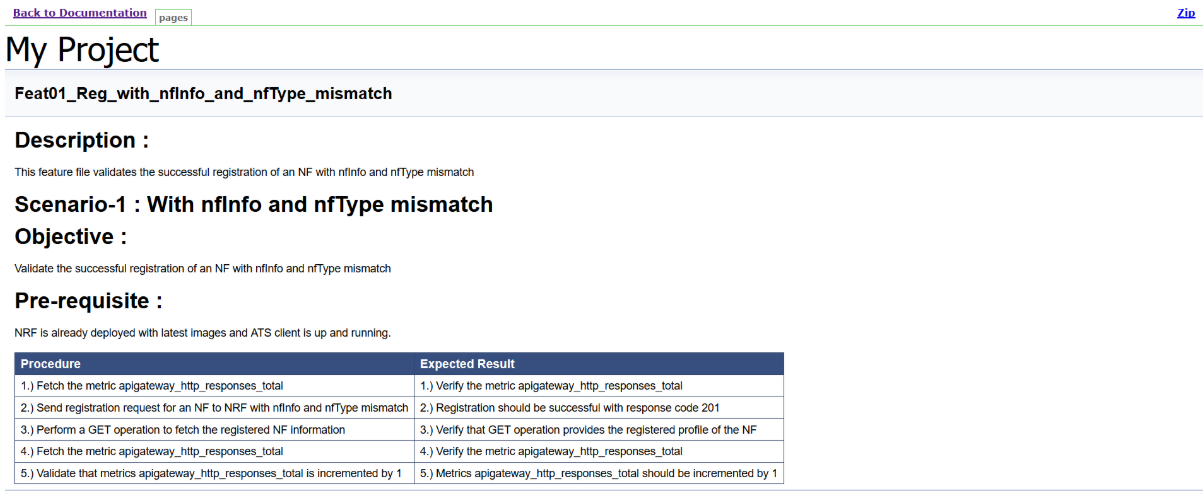 This pre-configured pipeline has the HTML report of all the feature files that are getting tested as part of NRF ATS.