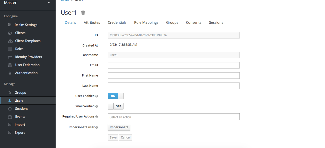 8. Go the Users page and click on Add user to create a user. Add user screen appears at the right pane. Enter the details.