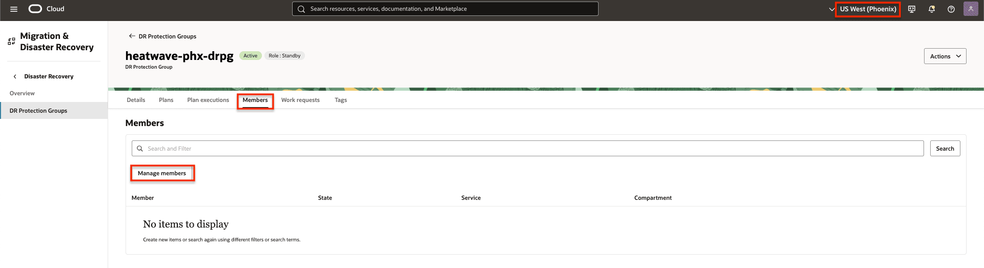 - Aufgabe 2: MySQL HeatWave zu den DR-Schutzgruppen in beiden Regionen hinzufügen