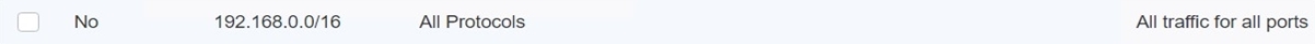 Hinweis: Es wird empfohlen, eine Zeiteingabe für das gesamte /16-Subnetz hinzuzufügen, um einen einzelnen Eintrag für alle einzelnen Segmente zu vermeiden. Es ist jedoch nicht obligatorisch und basierend auf dem Design können Sie immer die erforderlichen Network Address Translation-(NAT-) und SNAT-Regeln hinzufügen. Das Beispiel im folgenden Screenshot zeigt den Eintrag für das gesamte /16-Subnetz, das alle drei Overlay-Segmente abdeckt.