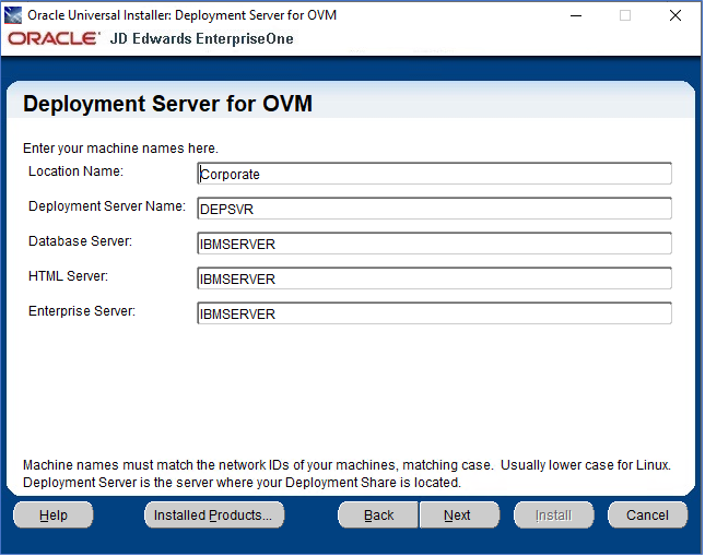- On Deployment Server for OVM, provide location name and machine names for your