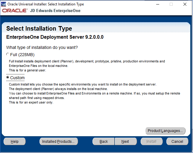 - Select an Installation Type of Full or Custom. A Custom