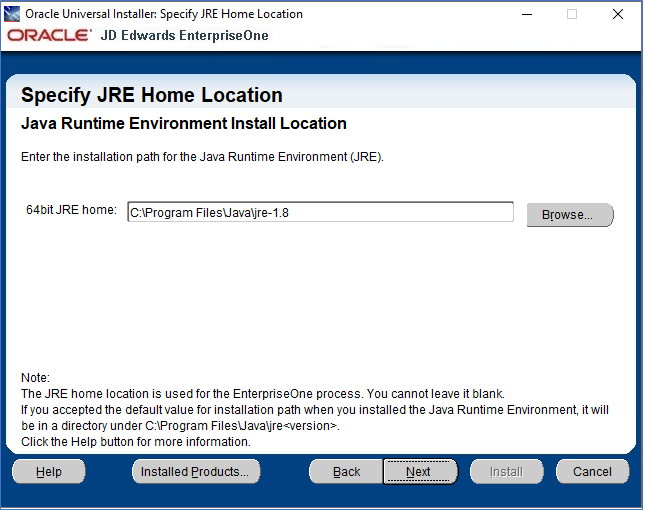 - As a prerequisite, you must have installed a 64-it Java Runtime. Provide the path to