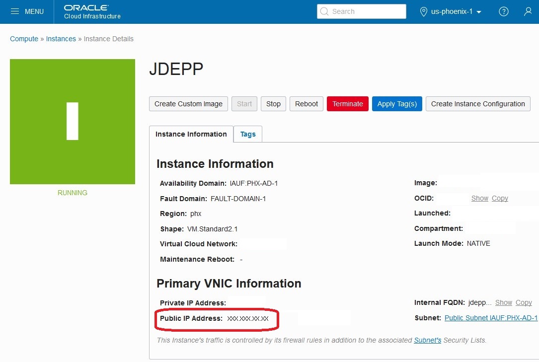 Provisioning Server Instance. This IP address is shown in the Oracle