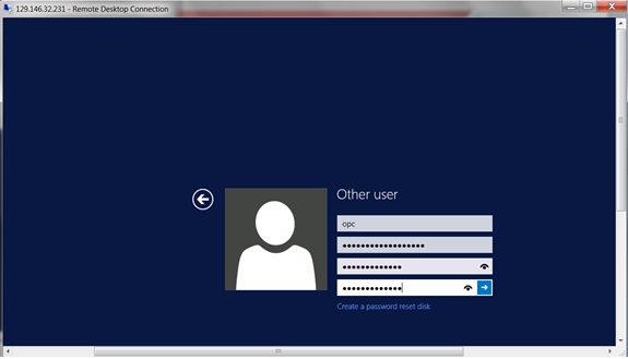 8. Change the password for the opc user following the Microsoft Windows policy for creating a user password.