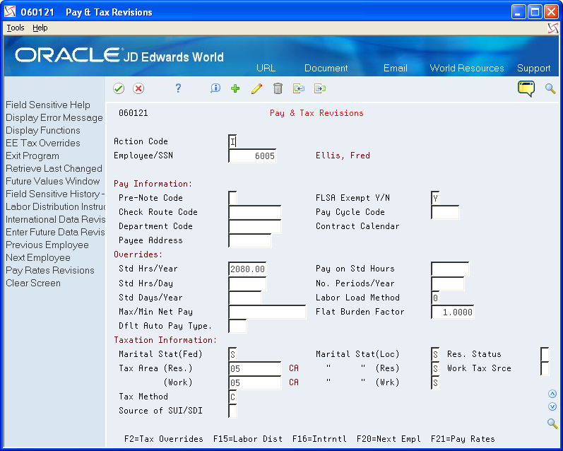 From Additional Employee Data & Reports (G07111), choose Pay & Tax Revisions