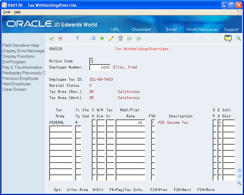 From Employee Information (G0711), choose Tax Withholding/Overrides