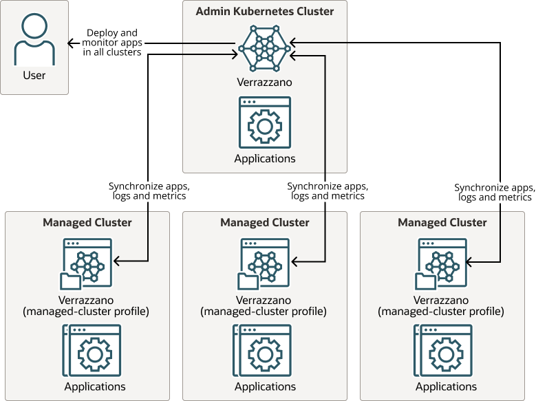 • Verrazzano multicluster applications may be deployed to the managed cluster from the admin cluster.
