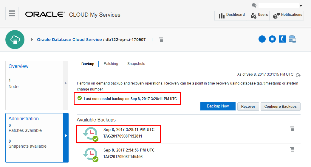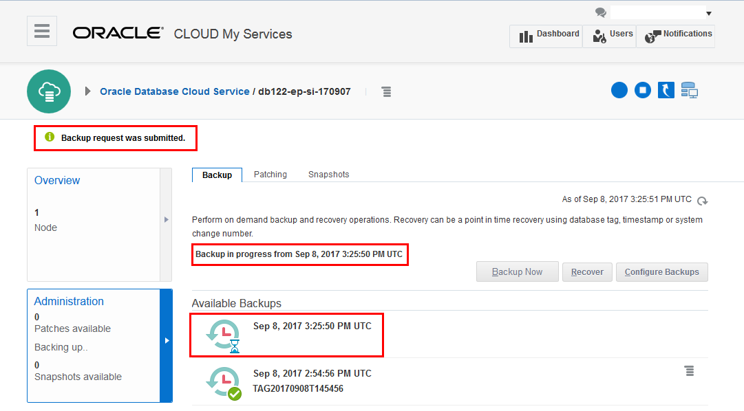 This tutorial shows you how to create an on-demand backup in Oracle Database Cloud Service. This tutorial takes approximately 10 minutes to complete.